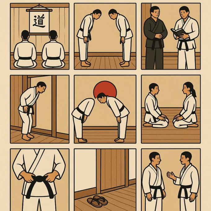 O Judo valoriza princípios como respeito, cortesia e autocontrolo. Estes valores refletem-se em regras simples que todos devem seguir. A etiqueta não é apenas tradição, mas também uma forma de manter a segurança e a boa convivência.
